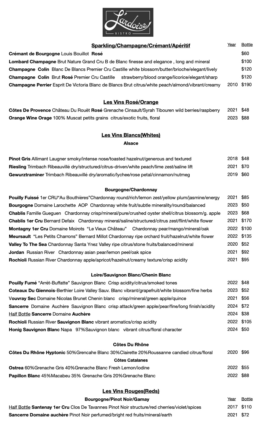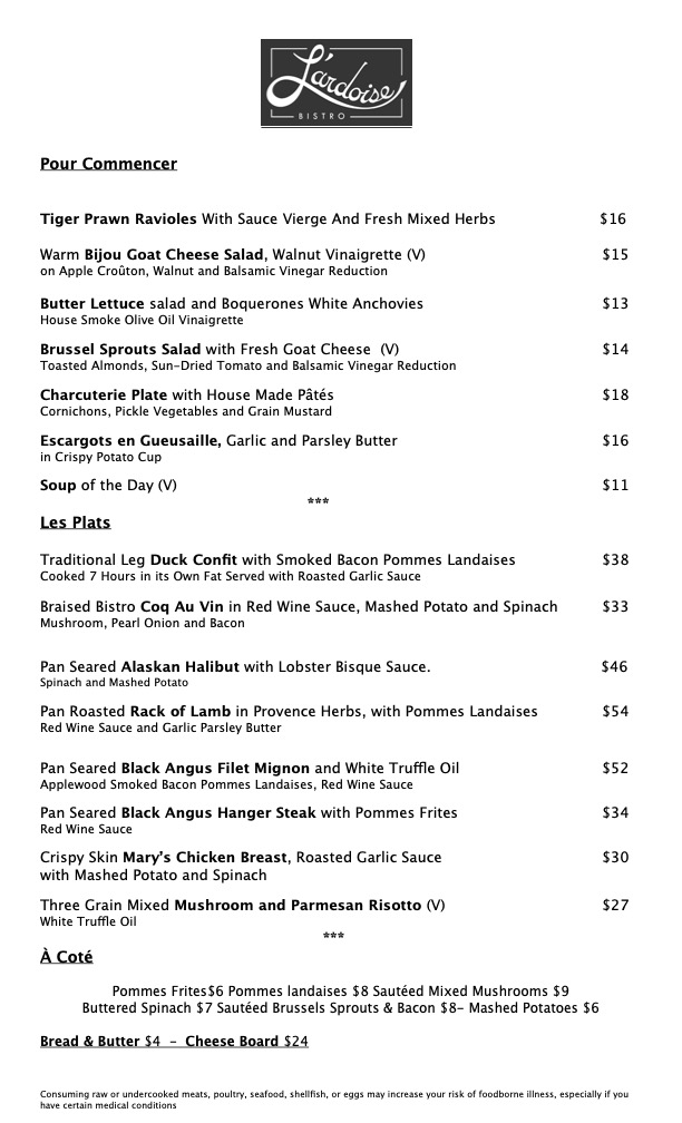 L'Ardoise is now open on Sunday and Thanksgiving with special menus.